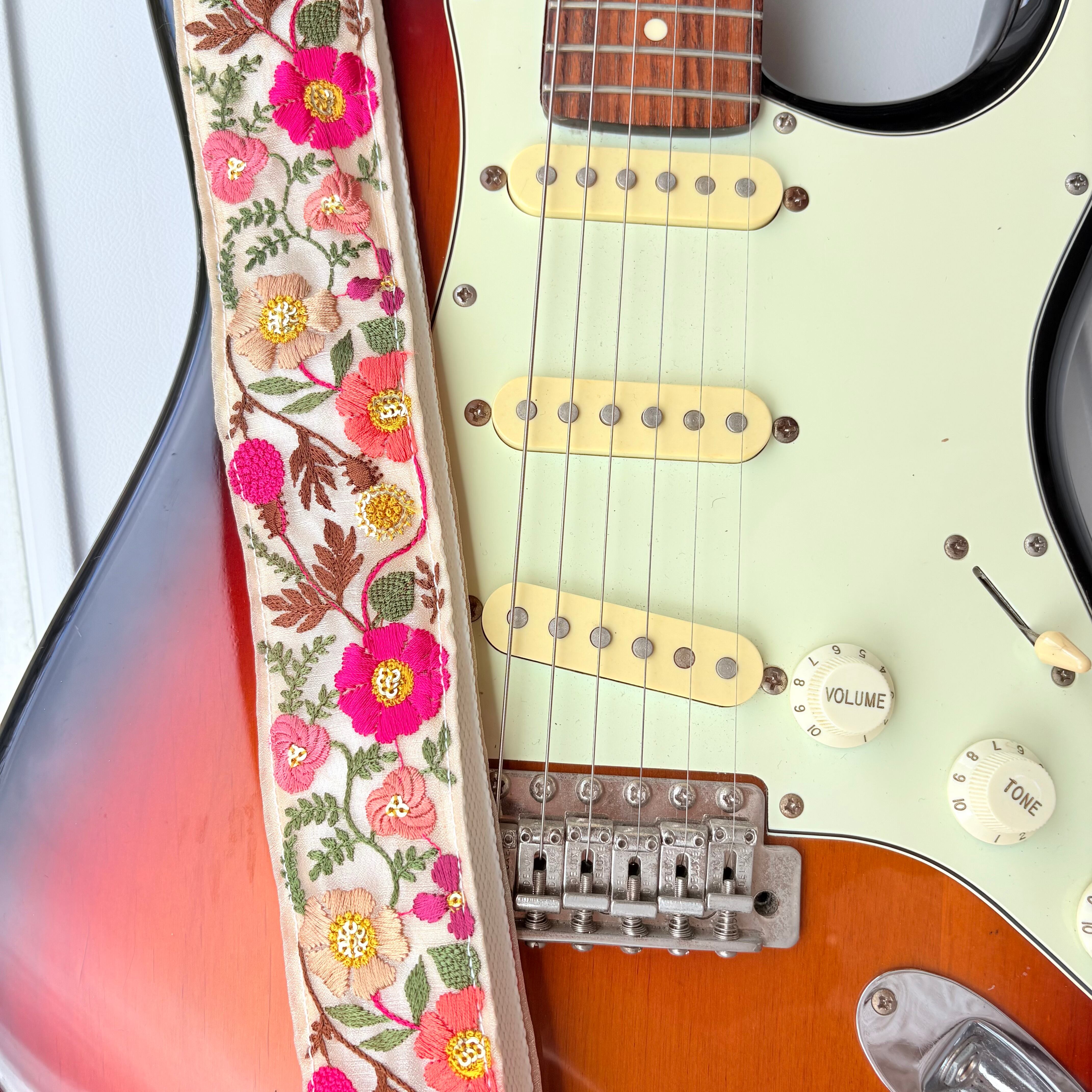 インド刺繍リボンのギターストラップです。