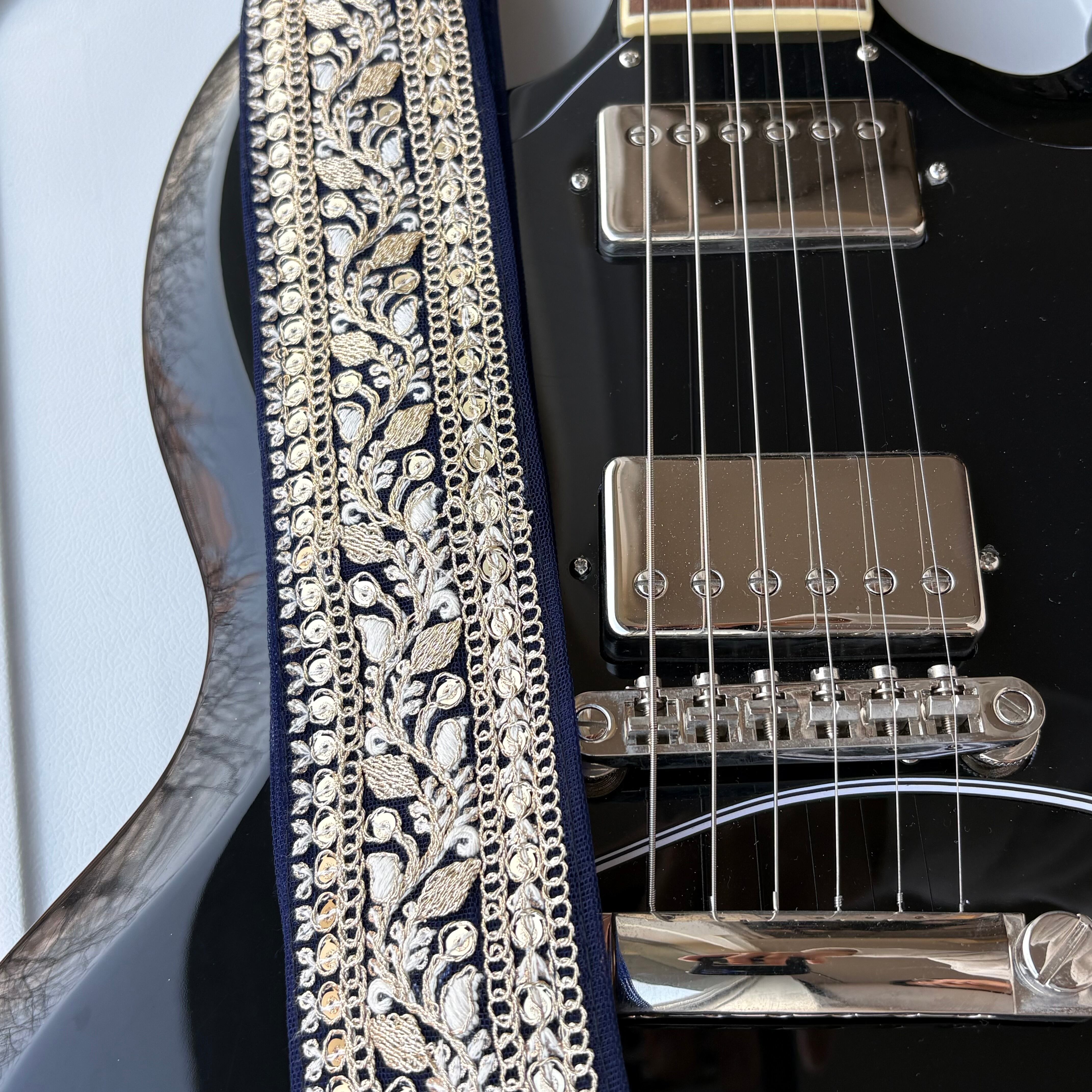インド刺繍リボンのギターストラップです。