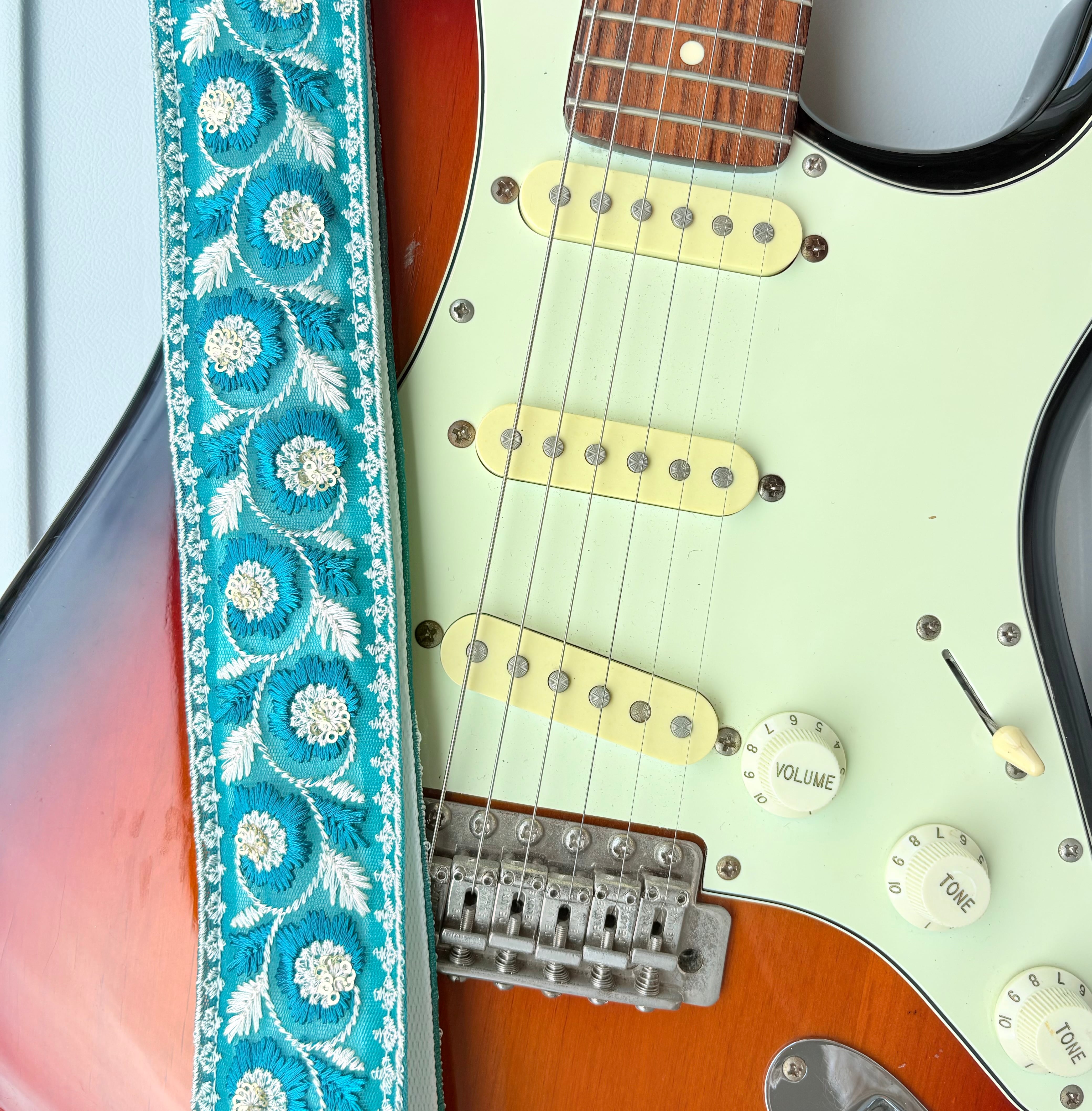 インド刺繍リボンのギターストラップです。