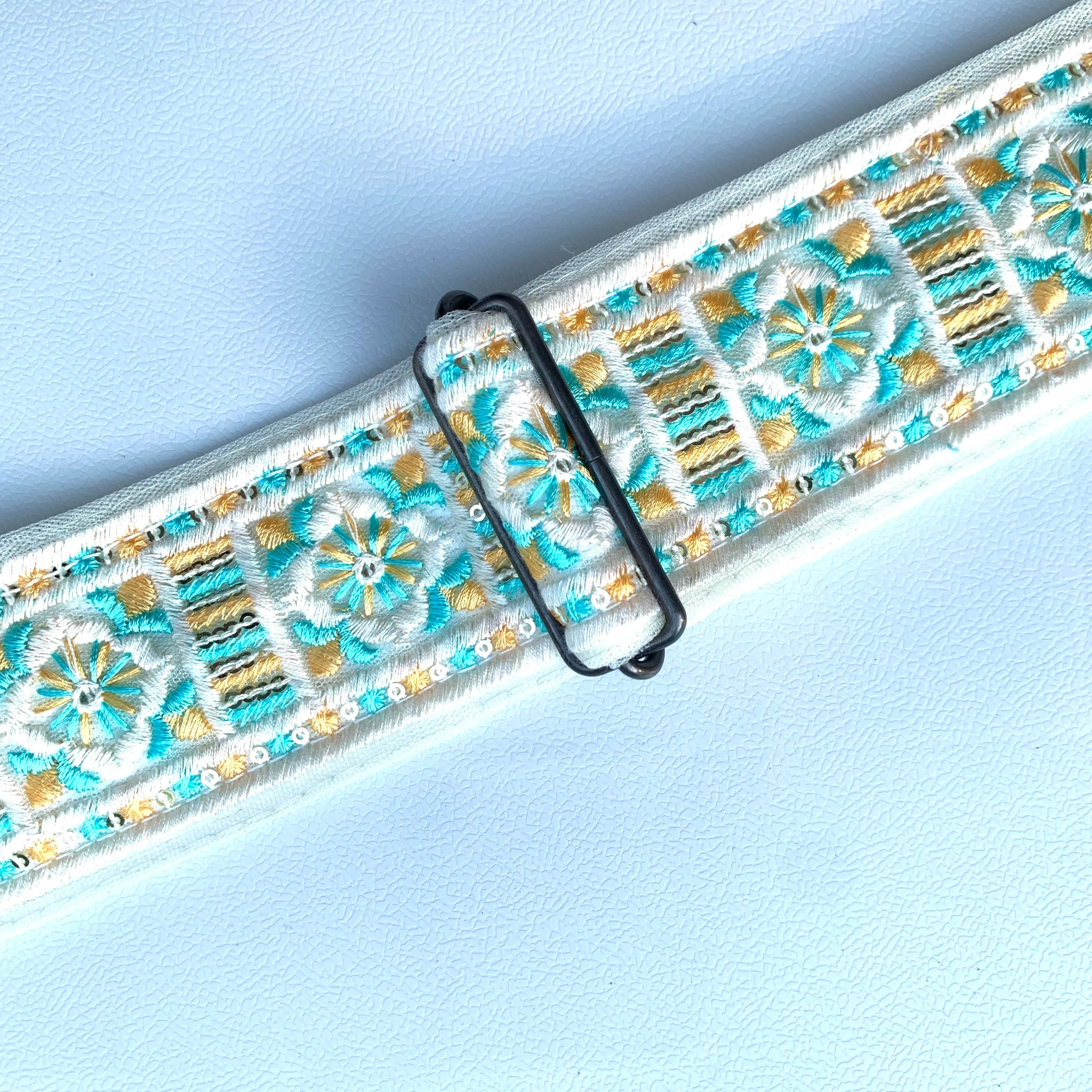 インド刺繍リボン特有の、繊細な刺繍と高級感のあるデザイン、大ぶりの柄が楽器を華やかに彩ってくれるでしょう。